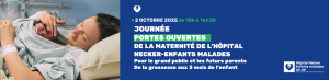 La maternité de l’hôpital Necker-Enfants malades organise le jeudi 2 octobre 2025, de 10h à 16h30, une journée portes ouvertes pour le grand public et les futurs parents, de la grossesse aux 3 mois de l’enfant.